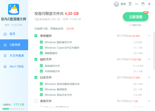 非凡C盘清理大师免费版是一款专门优化和清理电脑C盘的工具,非凡C盘清理大师电脑版能够帮助用户有效的释放磁盘空间和提升电脑性能,能够检测出占用C盘空间的大量垃圾文件,提供详细的清理报告,用户可以根据报告内容选择需要清理的项目,避免误删除重要文件。