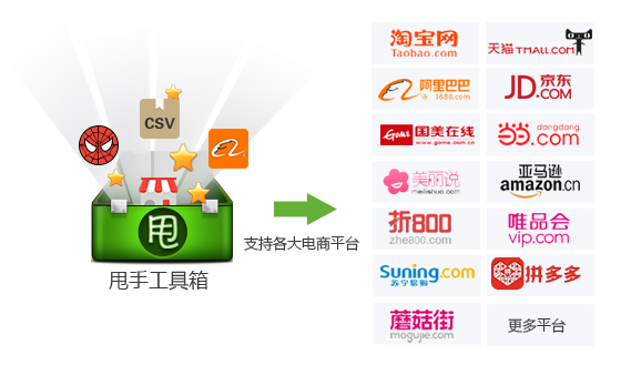 甩手工具箱之中用户可以使用该软件快速完成店铺的自动经营和装修,并且该软件可以抓取各个平台的内容,帮助用户快速进行内容的装修,让整个店铺变得好看,整个产品页面也会更加和谐。
