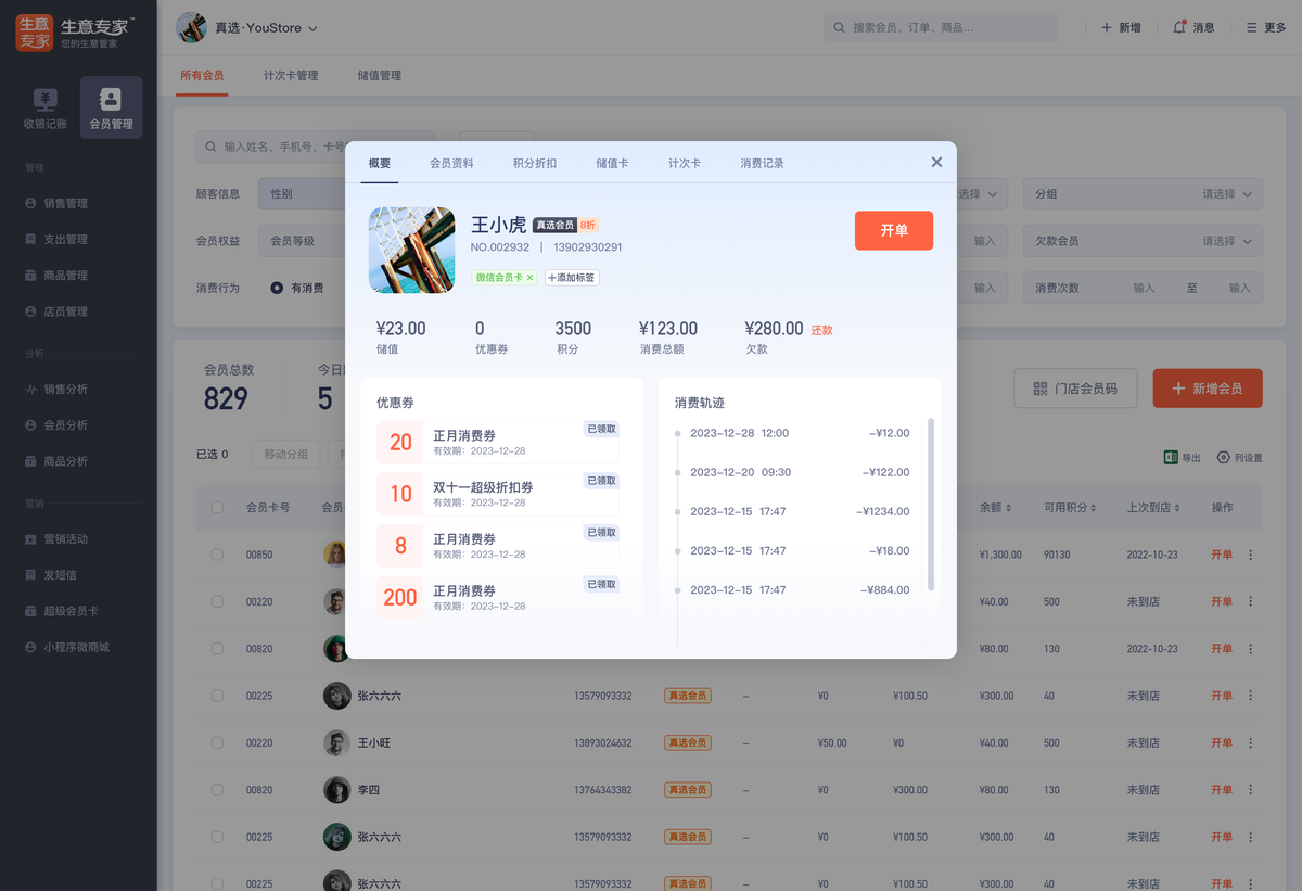 提供优惠券(灵活设面额、条件等)、套餐(组合商品优惠售卖)、买赠(设买送规则)、减免、新会员及转介绍奖励模板,刺激消费、拓展客源 。