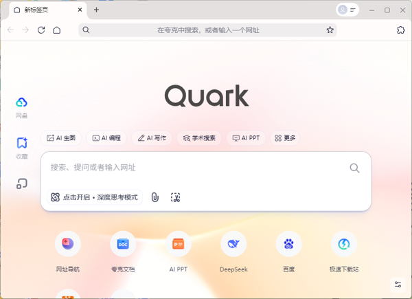夸克是一款轻量级多功能浏览器工具,夸克电脑客户端提供了简洁、快速、安全的上网体验,内置了非常智能搜索引擎,支持用户快速查找网页、图片、视频等内容,还提供了文本搜索、图片搜索等多种搜索方式,方便用户快速找到所需的信息。