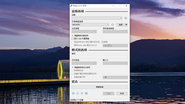 Rufus软件界面设计非常的简洁直观,易于用户使用,无需任何复杂的配置,就可以完成创建可启动USB驱动器的操作。