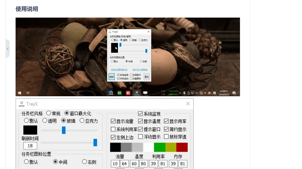TrayS是一款非常独特的任务栏工具,TrayS中文版之中用户可以在该软件的帮助下直接自定义任务栏的内容以及风格,并且可以设置任务栏的风格以及软件的显示,还可以直接灵活设置托盘图标关闭,以此保持桌面整洁,不会杂乱。