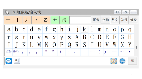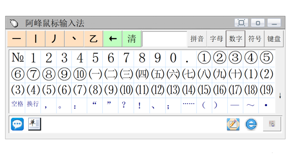 阿峰鼠标笔画输入法电脑版是一款简单好用的输入法工具,阿峰鼠标笔画输入法2025最新版能够让用户通过鼠标在输入框内绘制汉字的笔画,系统自动识别并将用户绘制的笔画转化为正确的汉字,能够识别并纠正用户输入中的笔画顺序错误,提供汉字输入的实时提示和候选字显示,帮助用户快速选择正确的汉字。