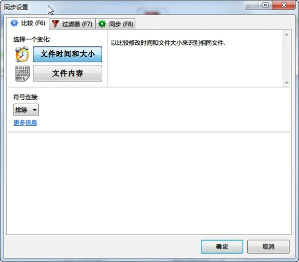 比较设置:默认情况下,FreeFileSync使用文件的时间和大小来进行比较,这样速度非常快。如果选择比较文件内容,速度会较慢,除非有特殊需求,否则不建议选择此选项。