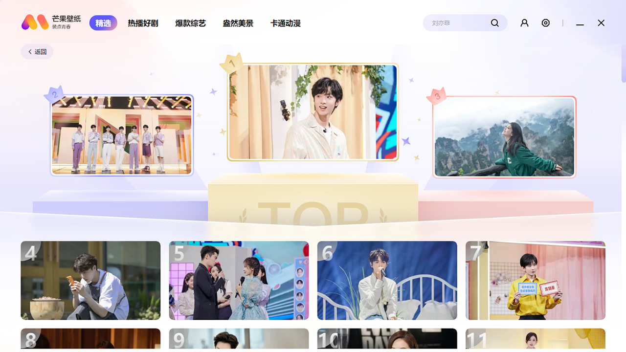 芒果TV壁纸这是来自芒果TV旗下专门为广大芒果TV的用户们推出的一款影视类产品的壁纸软件,芒果TV壁纸会将平台上一些热门影视作品和综艺作品的花絮和内容截图制作成高清桌面和壁纸给到广大使用者们哦!各类风景、动漫、人物、影视、游戏等多种类型,满足不同用户的审美需求和兴趣爱好。,满足不同用户的审美需求和兴趣爱好,所有壁纸均为高清无水印,支持多种分辨率适配,无论是高清大屏还是普通显示器,都能完美呈现壁纸细节,确保视觉效果清晰、细腻。
