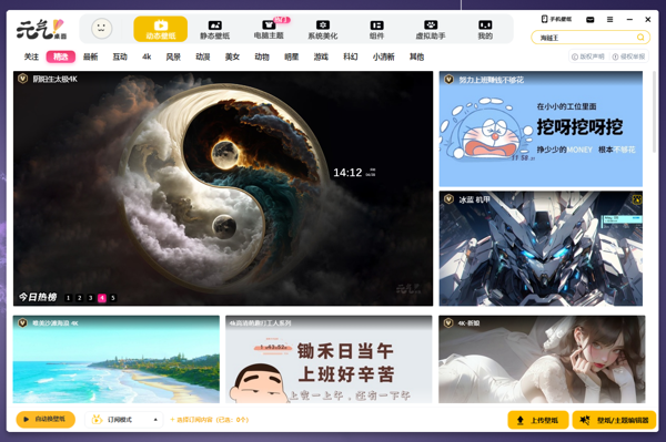 元气动态桌面2025免费版是一款非常好用的桌面美化软件的你,这里提供了丰富的动态壁纸和互动效果,能够为用户的桌面环境提供动感和活力,元气动态桌面电脑版可以让用户的桌面背景变得更加生动有活力,不仅能够展示各种高清壁纸,还可以设置视频和动态效果。