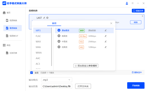 批量转换高效:支持批量转换功能,用户可以一次选择多个文件进行转换,大大节省了时间和精力,提高了工作效率,尤其适合需要处理大量音视频文件的用户。