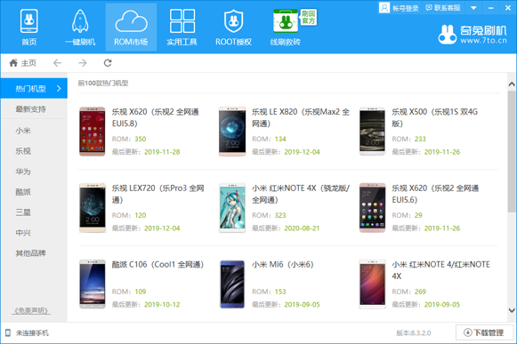 奇兔刷机电脑版是一款为手机设计的刷机工具,软件能够让用户通过简单的操作刷入ROM,奇兔刷机app免费版可以自动识别连接到设备型号、版本,根据设备的实际情况推荐相应的刷机包和步骤,还支持一键root设备,帮助用户获取超级管理员权限。