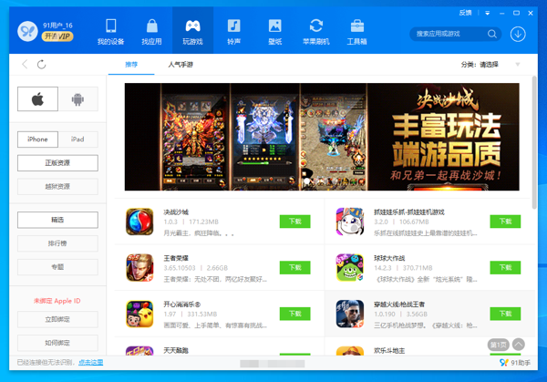 91手机助手2025最新版是一款针对手机设备而设计的管理工具,软件提供了应用管理、数据备份、文件传输、手机优化等多种功能功能,91手机助手电脑版内置了丰富的你应用资源,用户可以轻松安装体验各类热门的应用和游戏,能够帮助用户更好的管理设备。