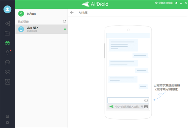 支持远程输入文本,将电脑键盘作为手机输入工具,大幅提升手机文字输入效率,特别适合需要在手机上输入大量文字的场景。
