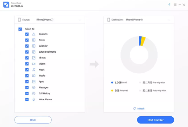 数据传输无缝且全面:可以帮助 iOS 用户将旧设备上的所有数据内容,如联系人、短信、照片、视频、音乐、应用数据等,无缝传输到新设备。无需担心数据丢失或遗漏,让用户在更换设备时能够完整保留原有数据,实现数据的完美迁移。