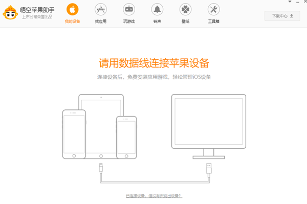 用户通过 USB 数据线将苹果设备与电脑连接后,可借助悟空苹果助手管理照片、音乐、视频等媒体文件。