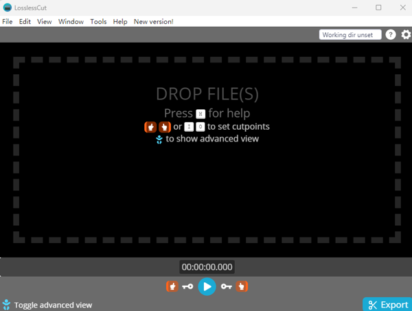LosslessCut软件拥有简洁友好的用户界面,使得用户可以轻松上手,拖放功能使得导入和导出非常简便。