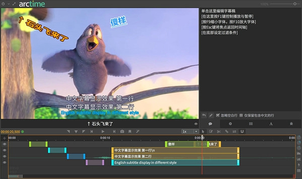 Arctime字幕软件电脑版是一款功能的强大的字幕编辑工具,Arctime字幕软件最新版支持多种字幕格式,提供了简单易用的界面和丰富的功能,帮助用户轻松地制作、编辑、同步和导出字幕,可以方便地导入和导出不同格式的字幕文件。