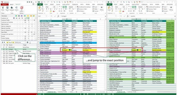 Synkronizer软件可以将不同的部分以不同颜色进行高亮显示,用户可以清晰地看到两个表格之间的不同之处。