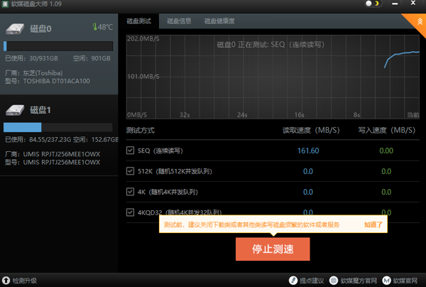 软媒磁盘大师电脑版是一款功能强大且广受欢迎的磁盘检测工具,软媒磁盘大师PC版能够实时监控磁盘的各项关键指标,通过详细的数据反馈,用户可以及时了解磁盘的运行状态,可以准确判断硬盘的健康状况,识别硬盘可能存在的坏道、读取错误等问题,帮助用户提前发现并解决硬盘潜在的故障问题,避免数据丢失。
