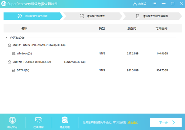 SuperRecovery超级数据恢复软件是一款功能全面、操作简便的数据恢复软件,支持多种存储设备和文件类型,SuperRecovery电脑版提供了快速扫描、深度扫描、分区恢复等多种数据恢复选择,帮助用户恢复因误删、格式化、分区丢失等多种原因造成的数据丢失。