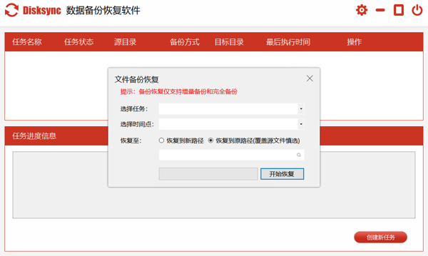 Disksync软件提供直观、易于使用的图形用户界面,所有同步任务、设置选项一目了然。
