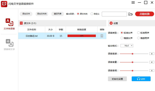 闪电文字语音转换器软件为用户提供便捷的文字语音转换服务,能够将输入的文字内容快速准确地转换为语音,并支持多种语言和声音选择。