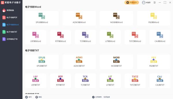 功能全面实用:软件主要有电子书转 PDF、电子书转 Word、电子书转 TXT、文件转电子书这四大功能,既可以把电子书转成常见文档格式,也能实现不同电子书格式间的相互转换。