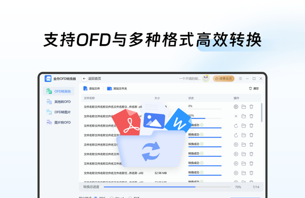 金舟OFD转换器2025最新版是一款高效的文件格式转换工具,软件可以帮助用户将OFD文件快速且准确的转换为PDF、Word等多种文件格式,金舟OFD转换器电脑版提供了简便的操作方式和批量转换功能,方便用户一次性转换多个文件。