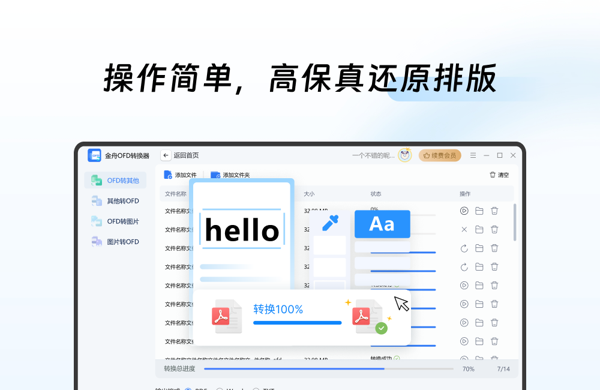一键批量转换:支持一键上传多个文件进行批量操作,可一次性处理多个 OFD 文件的格式转换,大大节省时间和精力,提高办公效率。