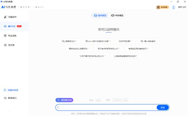 AI写作助理电脑版是一款利用最新人工智能技术的智能写作工具,AI写作助理2025客户端能够帮助用户高效完成各类写作任务和快速回答问题,通过强大的自然语言理解和生成能力,AI写作助理能够理解复杂的上下文,并根据您的指示自动生成流畅且有逻辑的文字。