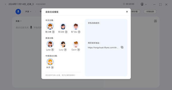 提供演讲模式、会议模式、字幕模式等,适用于大型发布会、国际论坛、小型商务会谈、线上课程、观看无字幕外语视频等多种场景。