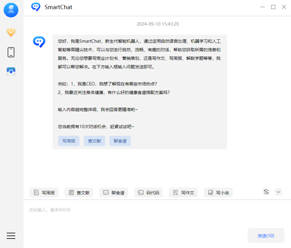 SmartChat智能对话电脑版是一款创新型智能机器人,专注于为用户提供高效、智能的对话体验,SmartChat智能对话最新版能够理解和生成自然语言,用户无需使用特定指令,只需与其进行正常的对话,便可获取所需信息。