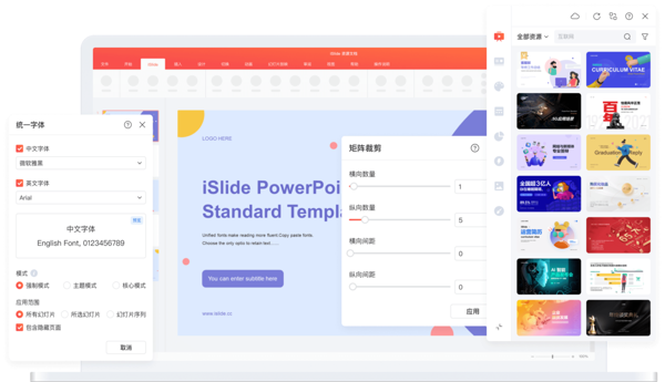 iSlide免费版是一款Ai智能PPT设计辅助工具,iSlide电脑版能够提升演示文稿的设计效率和美观度,提供了丰富的模板、图表、图形、配色方案等功能,帮助用户快速创建高质量的PPT演示文稿,内置了多种智能化和自动化的设计工具。