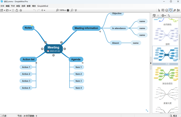界面直观易用:清晰简洁,功能布局合理,新用户也能轻松上手,可通过简单的点击和拖拽动作迅速建立思维导图。