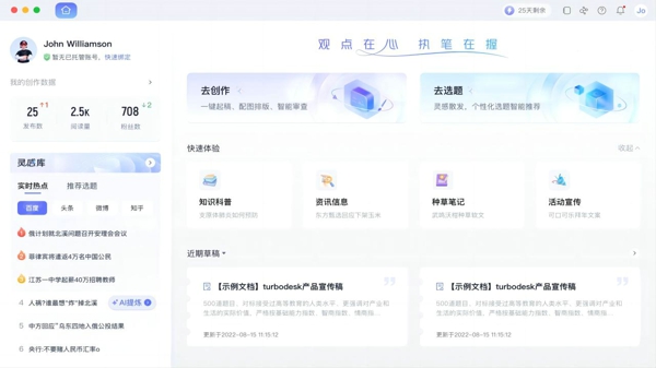 讯飞绘文2025最新版是一款AI智能创作辅助工具,讯飞绘文电脑版中用户只需要提供关键词或主题,软件就能基于上下文智能生成文案文档等内容,适合快速创作和文案撰写,能够自动优化内容的排版,调整段落、标题、字体等格式,让创作过程更加流畅高效。
