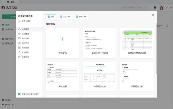讯飞文档电脑版是一款智能文档处理工具,讯飞文档PC最新版提供了多种文档模板,其中涵盖了报告、会议纪要、合同、简历等,用户可以根据需求选择适合的模板,快速创建高质量的文档,能够轻松制作适合场景的文档内容。
