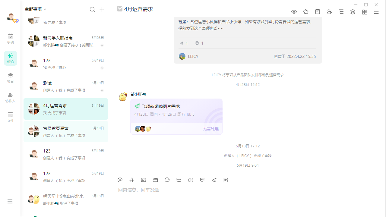 飞项是一款专注于办公项目的协作软件,飞项最新版之中用户可以快速解决办公时间不够的问题,将办公项目需要解决的部分用碎片化的时间来解决,用聊天的方式慢慢解决项目的各个问题,从而可以轻松解决项目沟通和写作。