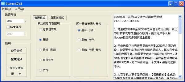 LunariCal软件是一款非常实用的日历生成工具,LunariCal最新版生成的日历可以保存为ICAL格式文件,支持导入到如Google 日历等其他流行的日历管理工具中,可以根据个人需求自定义日期、节气和节日的显示方式,用户可以自由设置起始日期、特殊标注等,灵活满足不同使用场景。