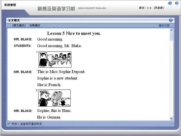 通过全文朗读功能,学习者可连贯聆听课文,培养语感和听力理解能力;句子即指即读功能更为灵活,点击任意句子,即可听到标准发音,便于及时纠正自身发音偏差。