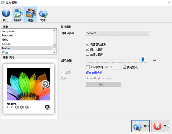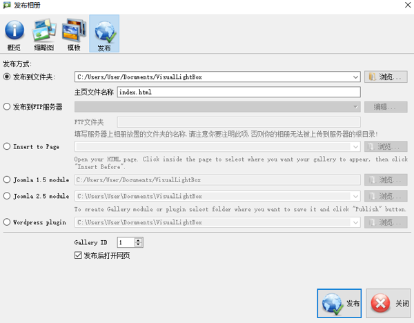 一键式发布流程:相册制作全程无需编写任何代码,素材准备完成后,点击 “发布” 按钮即可生成完整网络相册,且生成后能立即在浏览器中预览效果,大幅降低用户操作成本,新手也能在几分钟内完成相册制作。