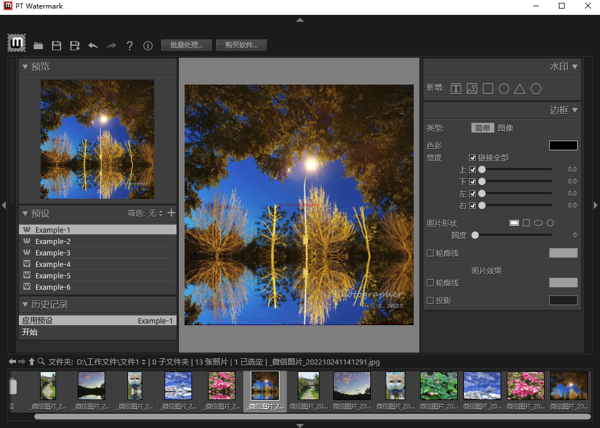 PT Watermark软件提供简便的操作、丰富的功能,帮助用户轻松添加水印和边框,为照片增添个性化元素,同时有效避免图片被非法盗用。