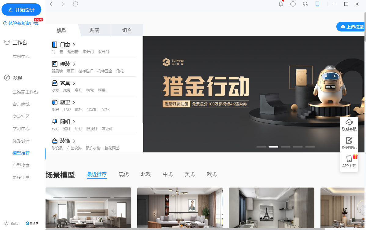 三维家3D云设计是一款非常强大的设计软件,三维家3D云设计软件之中有着非常强大的设计功能,该软件专注于家装行业的各个家具,有着非常多的在线模型可供设计师参考,让设计师不论是设计整个房间布局还是家具都可以更加简单和轻松。