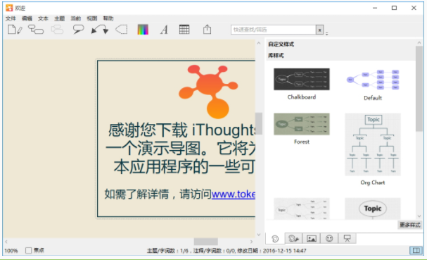 iThoughts软件提供了多种预设的主题和样式,用户可以根据需求选择不同的视觉效果,支持自定义样式,帮助用户根据个人喜好或品牌风格调整思维导图的外观。