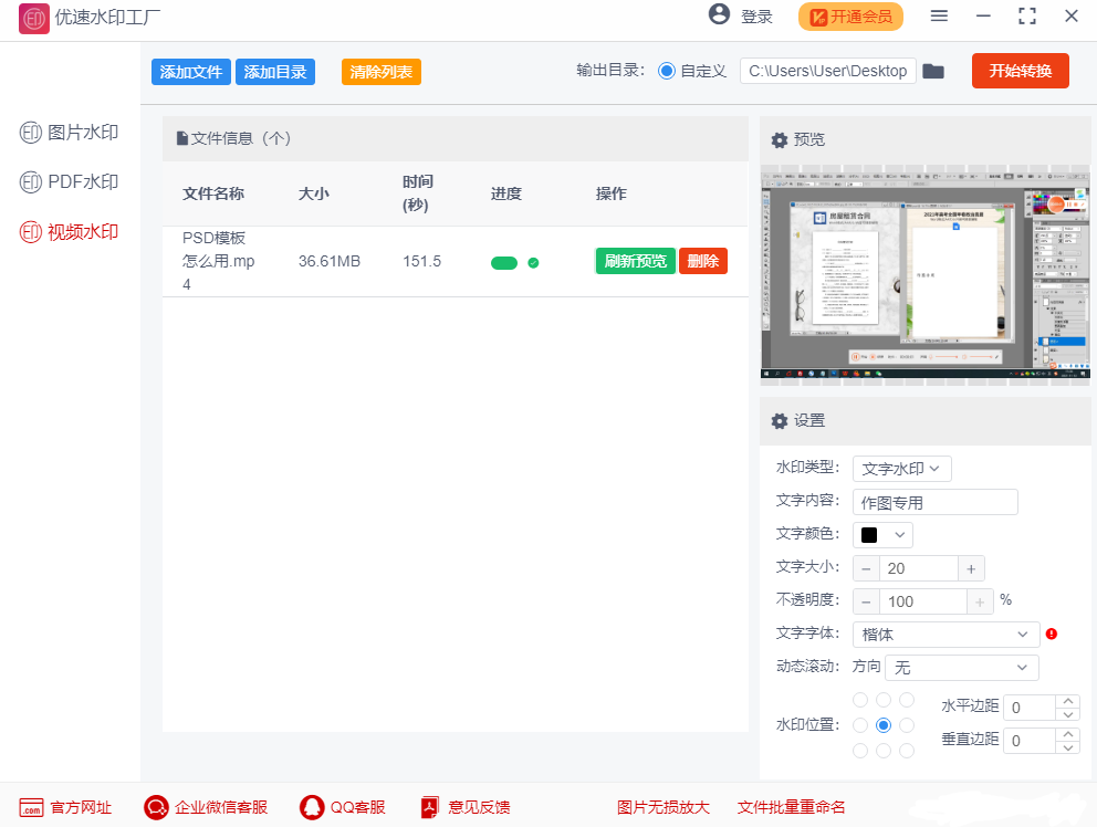 文字水印多样化:可自定义文字内容,自由设置字体、字号、颜色及排版,适配不同文件风格用途。
