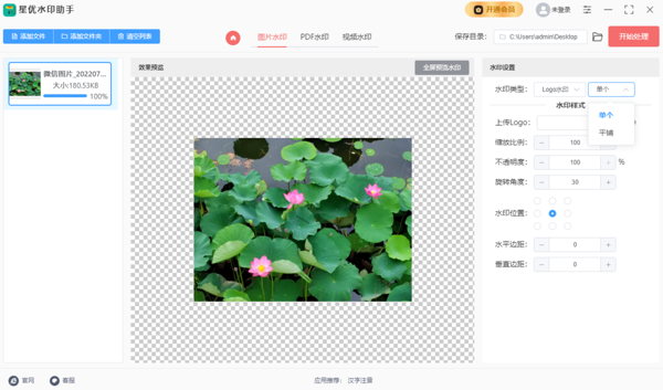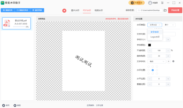 星优水印助手软件拥有简洁直观的操作界面,用户无需复杂的学习过程,只需简单的拖拽、点击几步,就可以完成文件的水印添加,省时省力。