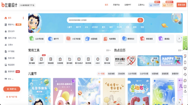 比格设计内置超 10 万款原创模板,构建起一个创意无限的资源宝库,全面覆盖设计工作的各类场景。