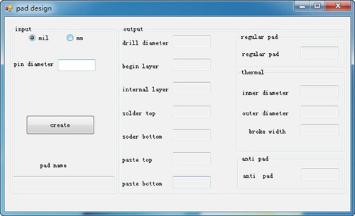核心功能聚焦焊盘尺寸计算,仅需输入 pin diameter(引脚直径)数值,软件即可自动生成焊盘各层(如顶层、底层、阻焊层等)的对应尺寸,无需手动繁琐计算。