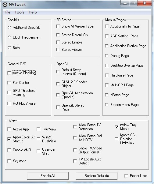 能够开启 Forceware 驱动程序中诸多隐藏选项,如不带有任何限制的超频功能、风扇调控、温度设定、OpenGL 2.0 调整等。