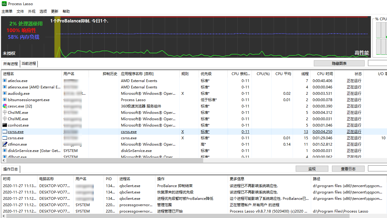 processlasso是一款非常独特的CPU优化工具,processlasso中文版之中用户可以根据自己的需求来调节整个设备之中各个软件的使用占比,让用户可以轻松调节好各个软件在进程之中使用的CPU的计算量,让用户在进行高计算的时候可以更加流畅。