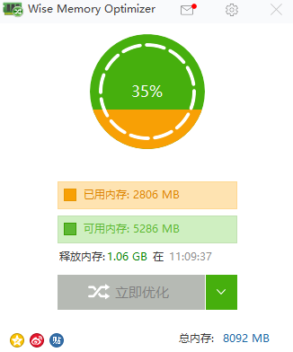 WiseMemoryOptimizer电脑版是一款轻量级的系统内容优化工具,WiseMemoryOptimizer客户端能够自动检测系统内存的使用情况,并在内存被大量占用时,自动释放未使用的内存,轻松提高计算机的性能,用户也可以手动进行内存优化操作。