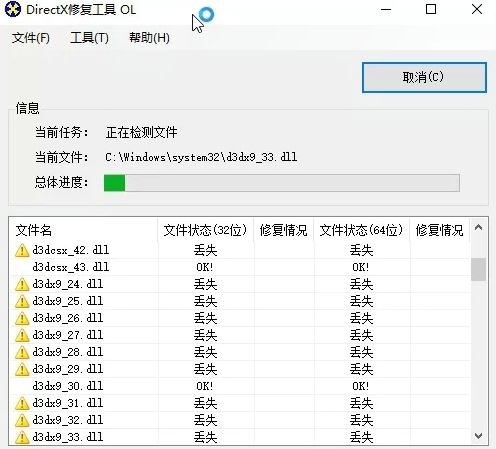 点击一键扫描之后会扫描电脑缺失的文件;