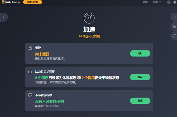 AVG TuneUp免费版是一款强大的系统优化工具,软件提供了清理、优化、修复和管理等多项功能,能够帮助用户提升计算机的性能,延长设备寿命,AVG TuneUp电脑版可以让用户设置定期运行自动维护任务,提供定期检测的系统报告,轻松了解计算机的状态。