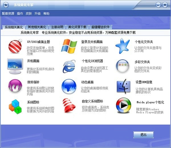 系统美化专家绿色版是一款功能强大的Windows界面美化工具,系统美化专家电脑版提供多种主题和皮肤,用户可以选择不同的样式,彻底改变Windows的外观,允许用户自定义任务栏和开始菜单的外观,让用户的操作界面更加符合个人审美。